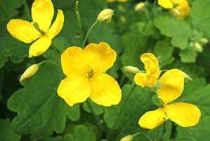 “El valor principal de Chelidonium radica en su acción sobre el hígado, pulmones y riñones. Puede estar indicado en diferentes afecciones del hígado, desde la simple congestión hasta la inflamación real. Produce dolores en el hipocondrio derecho, desde una simple sensación de magulladura hasta el carácter más grave de dolores agudos y pungitivos, que pasan rápidamente de la región hepática al epigastrio o bien al dorso, irradiando a la parte posterior del hígado. Hay un dolor notable en el ángulo inferior de la escápula derecha, siendo este síntoma, característico de Chelidonium en las afecciones hepáticas. Además de esto están presentes las manifestaciones habituales de la inflamación del hígado: escalofríos, fiebre, ictericia, lengua cubierta de una capa amarilla, sabor amargo, lengua con la impresión de los dientes, como sucede en Mercurius; deseo vehemente de tomar leche, que excepcionalmente sienta bien. Generalmente hay deseo de tomar ácidos y cosas agrias, como pepinos, vinagre, etc. Las deyecciones características son profusas de color amarillo brillante, diarreicas o arcillosas. Podemos hacer uso de la droga en el simple estado conocido como “bilioso”, en la congestión o inflamación hepática y también en la neumonía con síntomas biliosos” (Farrington).